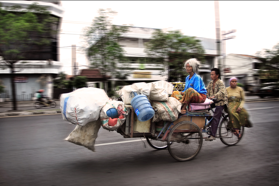 “Hari ini banyak undangan resepsi, belum bayar arisan lagi,” salah satu keluhan yang beliau terima dari tukang becak.