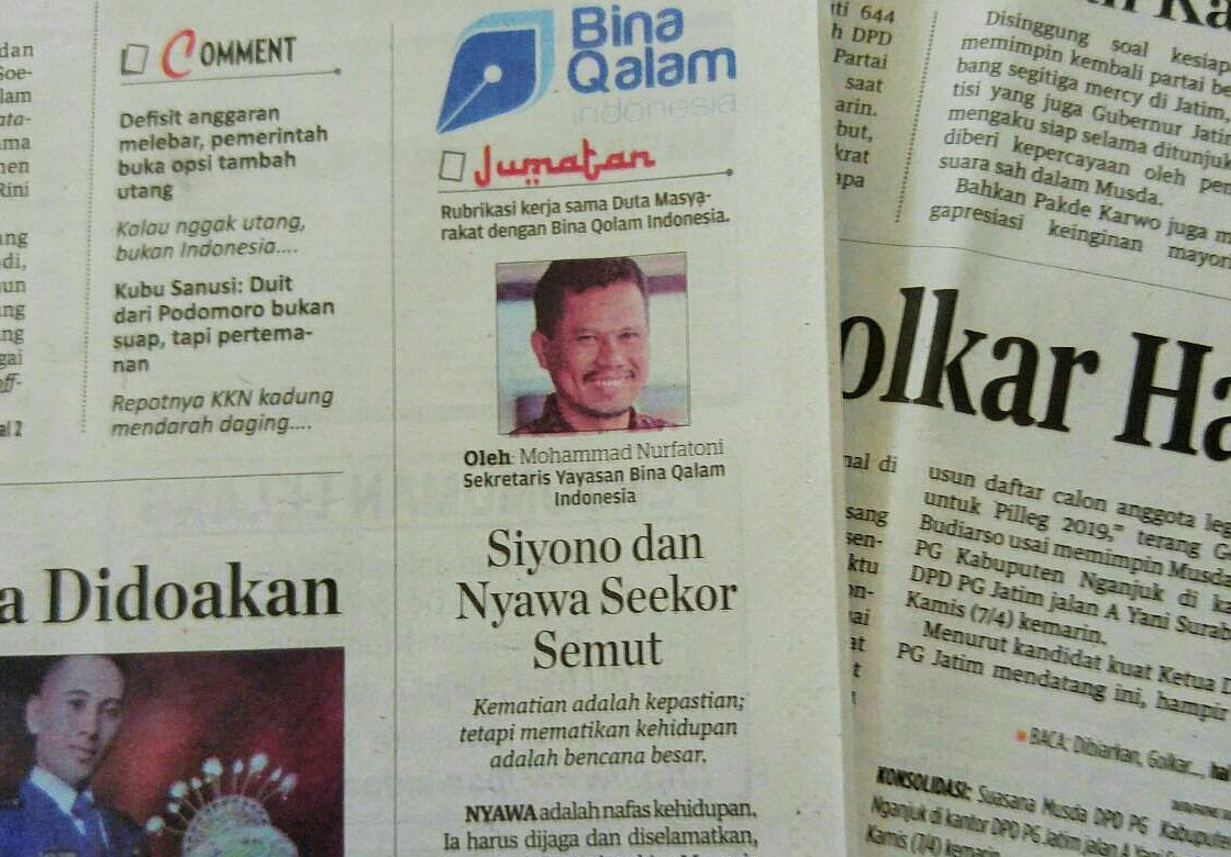 Kolom Mohammad Nurfatoni ini kali pertama dipublikasikan oleh Majalah YDSF, edisi Juni 2016